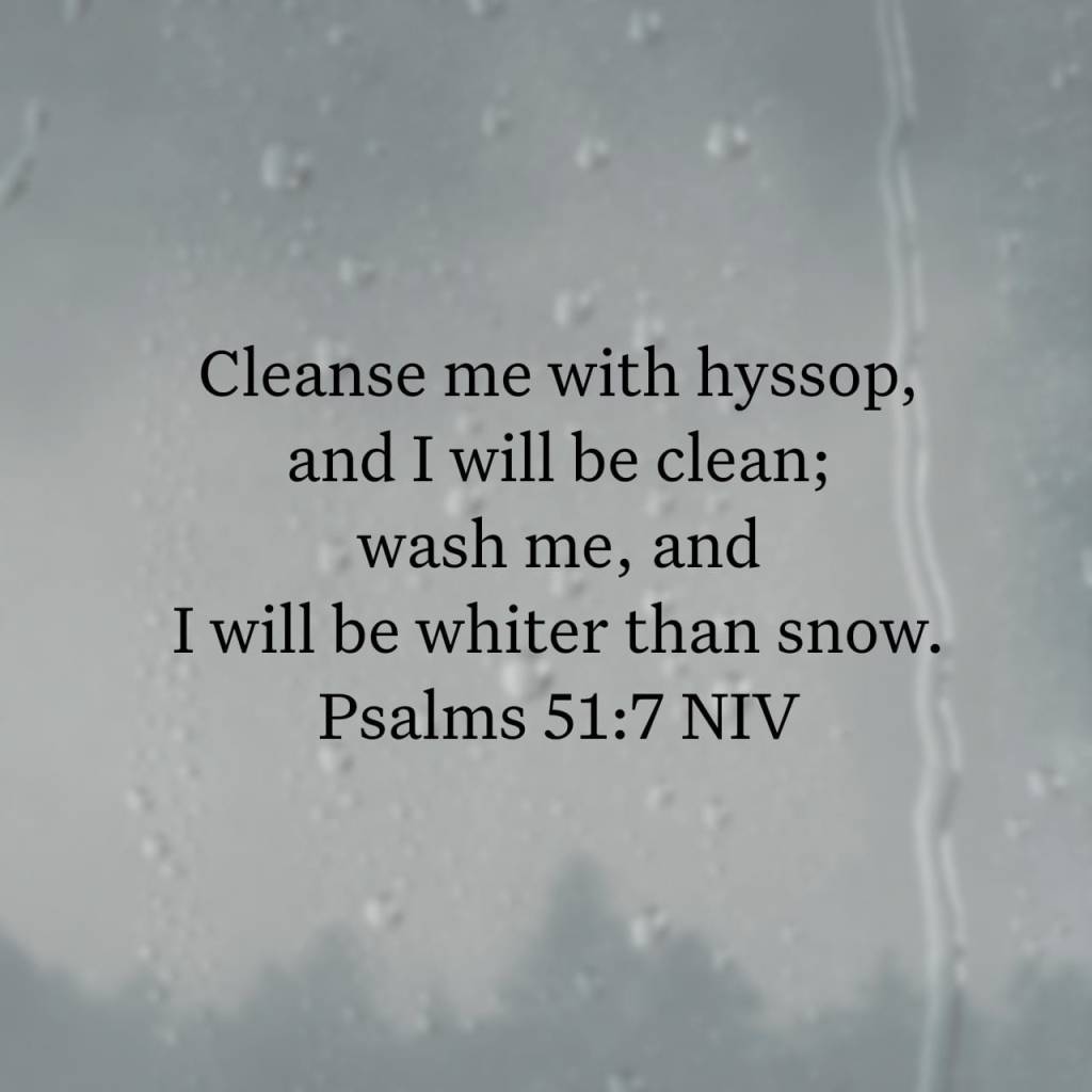 Cleanse me with hyssop, and I will be clean; wash me, and I will be whiter than snow.