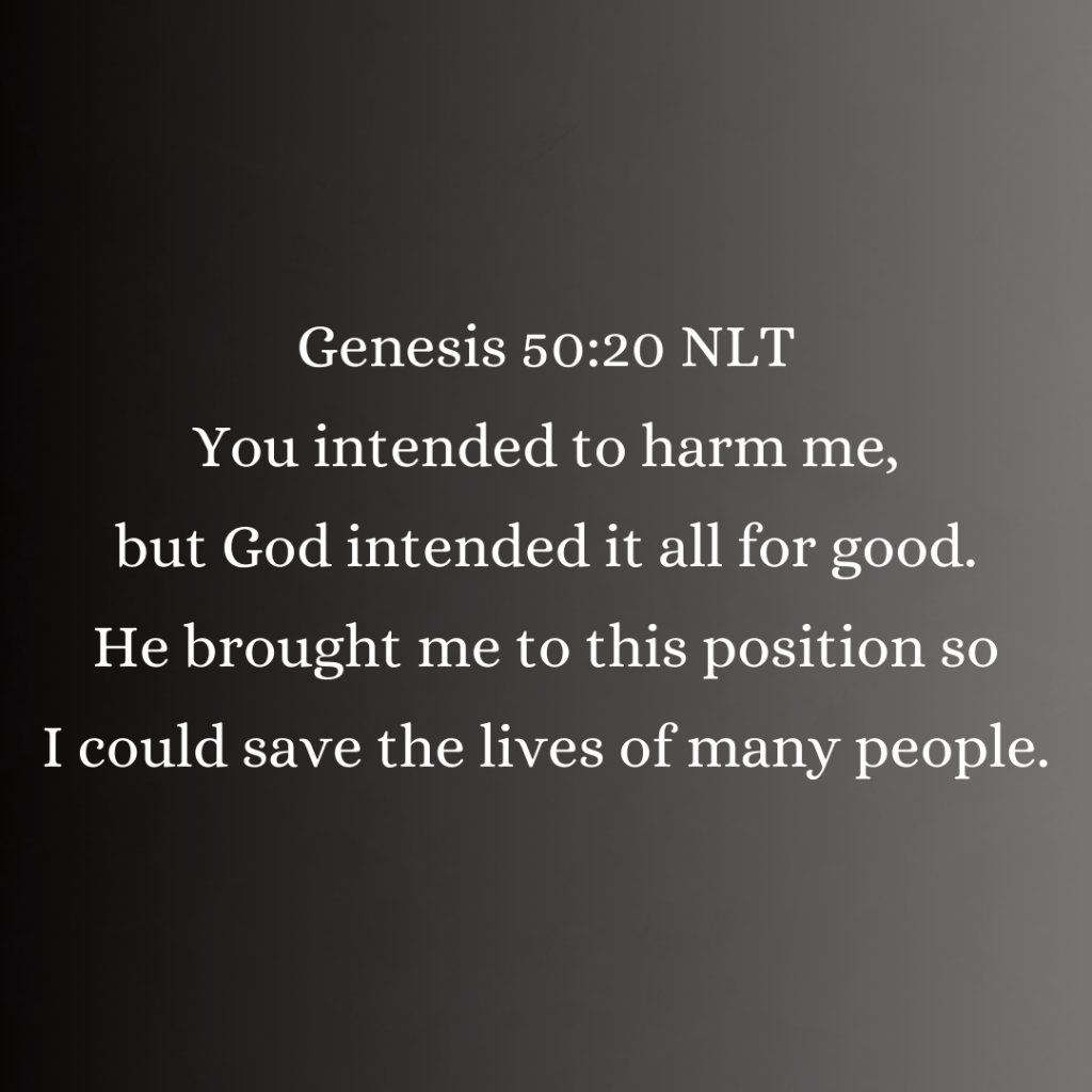 You intended to harm me, but God intended it all for good. He brought me to this position so I could save the lives of many people.