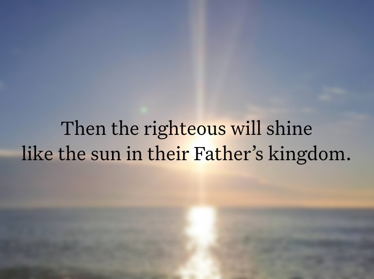 Then the righteous will shine like the sun in their Father’s kingdom.
