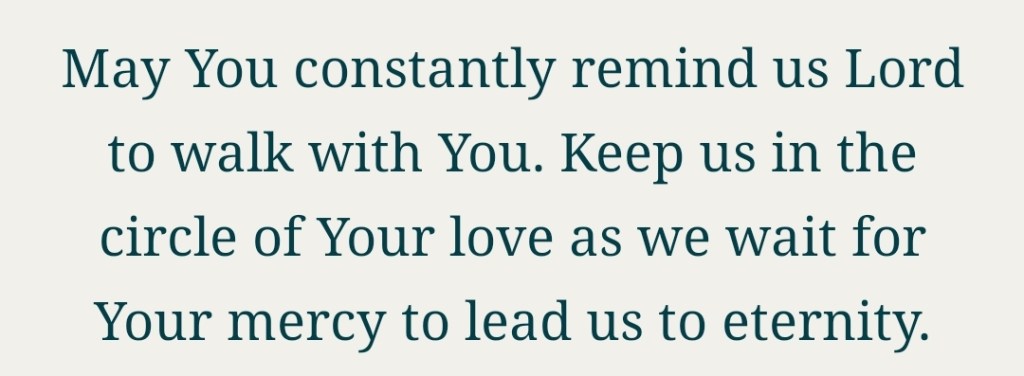 May you constantly remind us Lord to walk with you. Keep us in the circle of your love as we wait for your mercy to lead us to eternity.