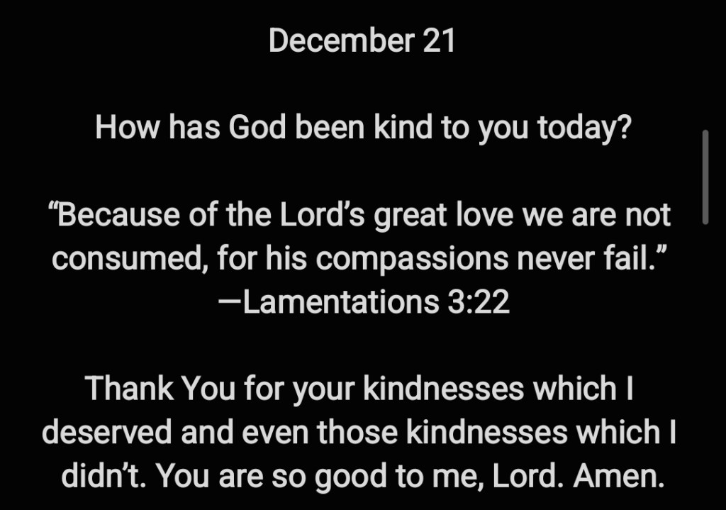 Thank you for your kindnesses which I deserved and even those kindnesses which I didn’t. You are so good to me, Lord. Amen.
