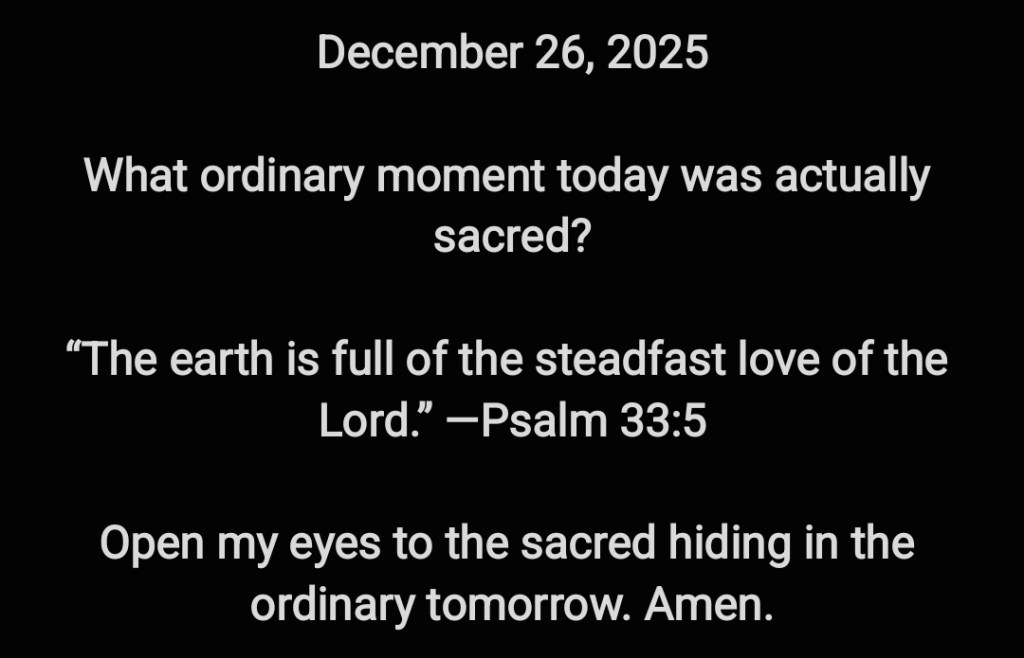 Open my eyes to the sacred hiding in the ordinary tomorrow. Amen.