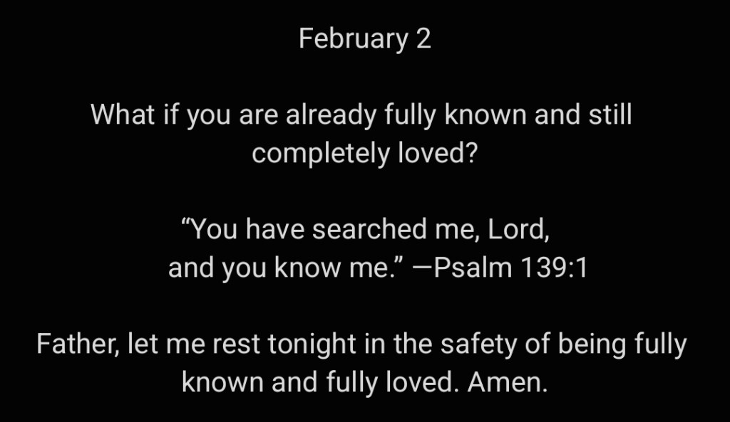 Father, let me rest tonight in the safety of being fully known and fully loved. Amen.