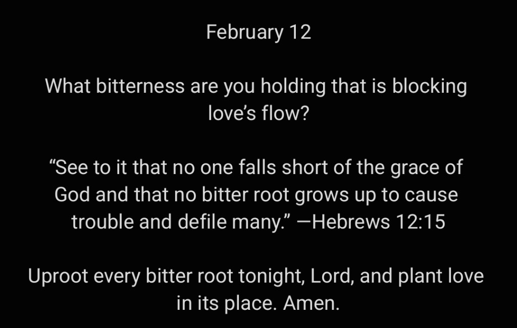 Uproot every bitter root tonight, Lord, and plant love in its place. Amen.