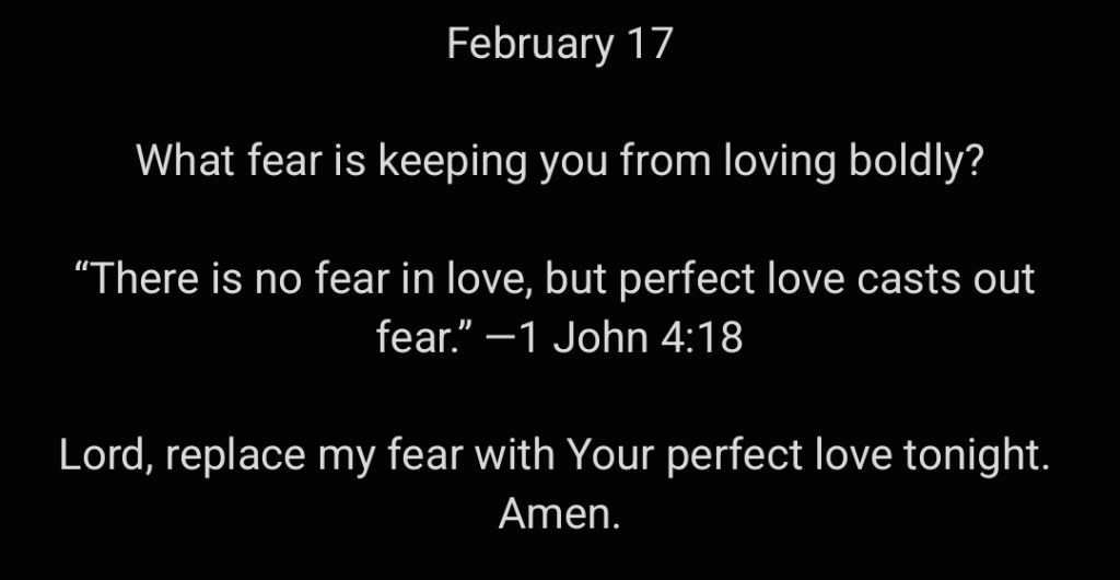 “There is no fear in love, but perfect love casts out fear.” —1 John 4:18