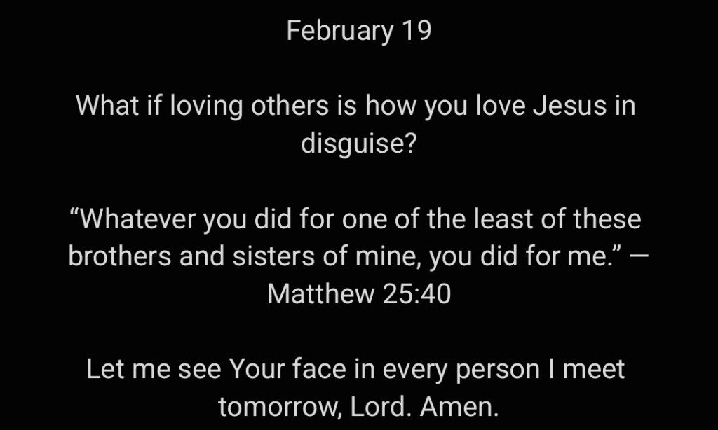 Let me see Your face in every person I meet tomorrow, Lord. Amen.