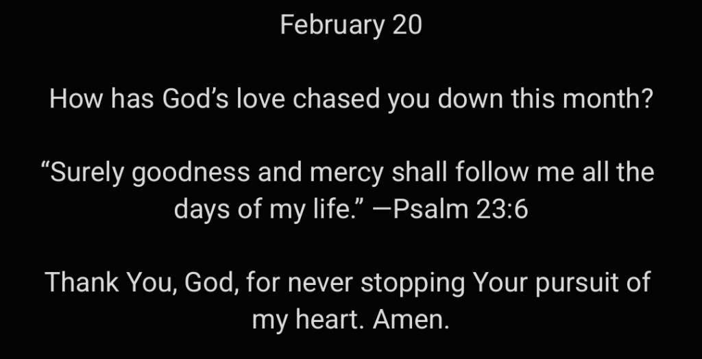 “Surely goodness and mercy shall follow me all the days of my life.” —Psalm 23:6