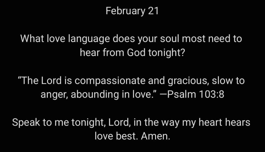 Speak to me tonight, Lord, in the way my heart hears love best. Amen.