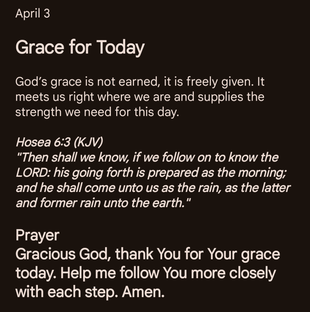 God’s grace is not earned, it is freely given. It meets us right where we are and supplies the strength we need for this day.