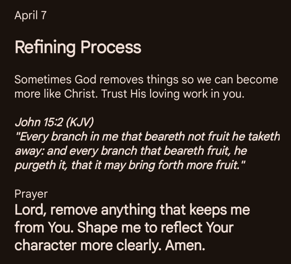 Sometimes God removes things so we can become more like Christ. Trust His loving work in you.
