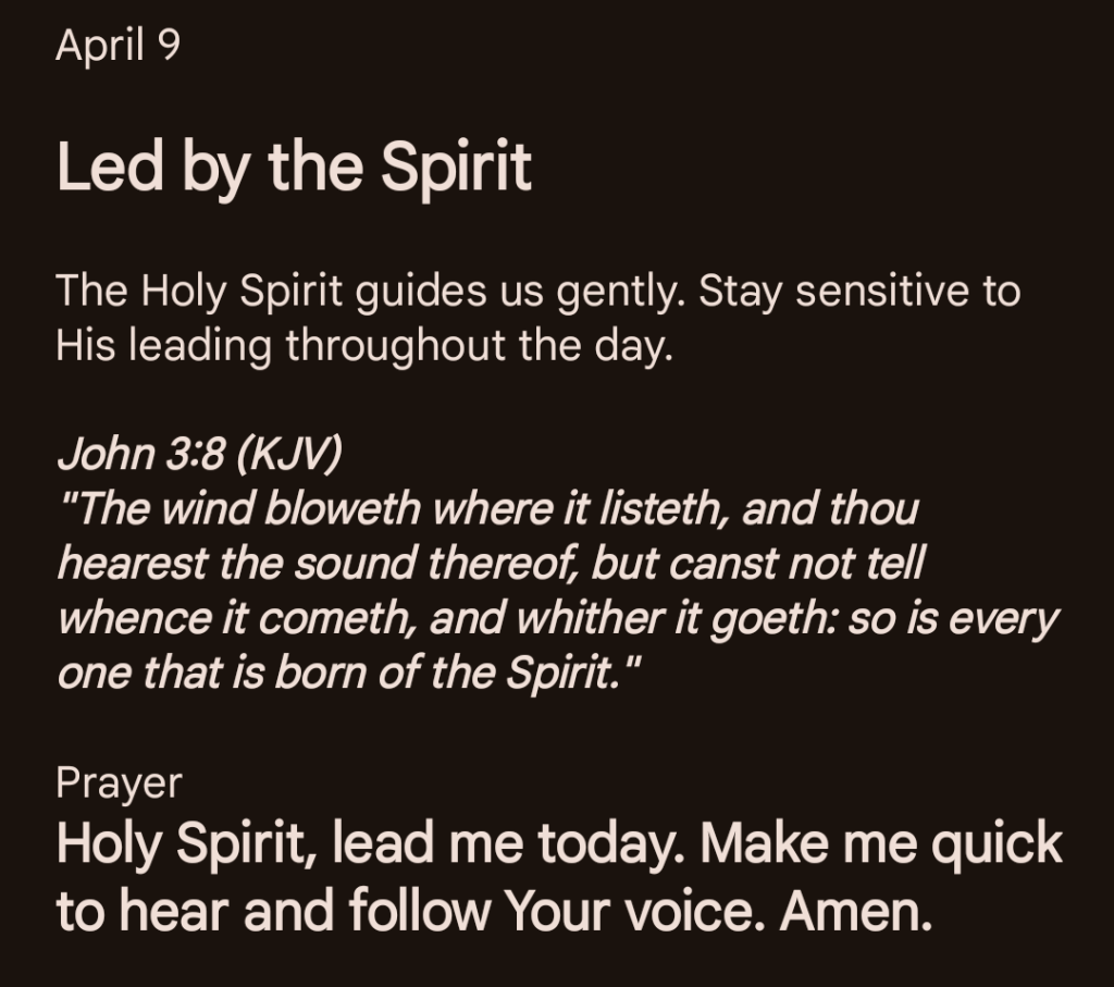 The Holy Spirit guides us gently. Stay sensitive to His leading throughout the day.