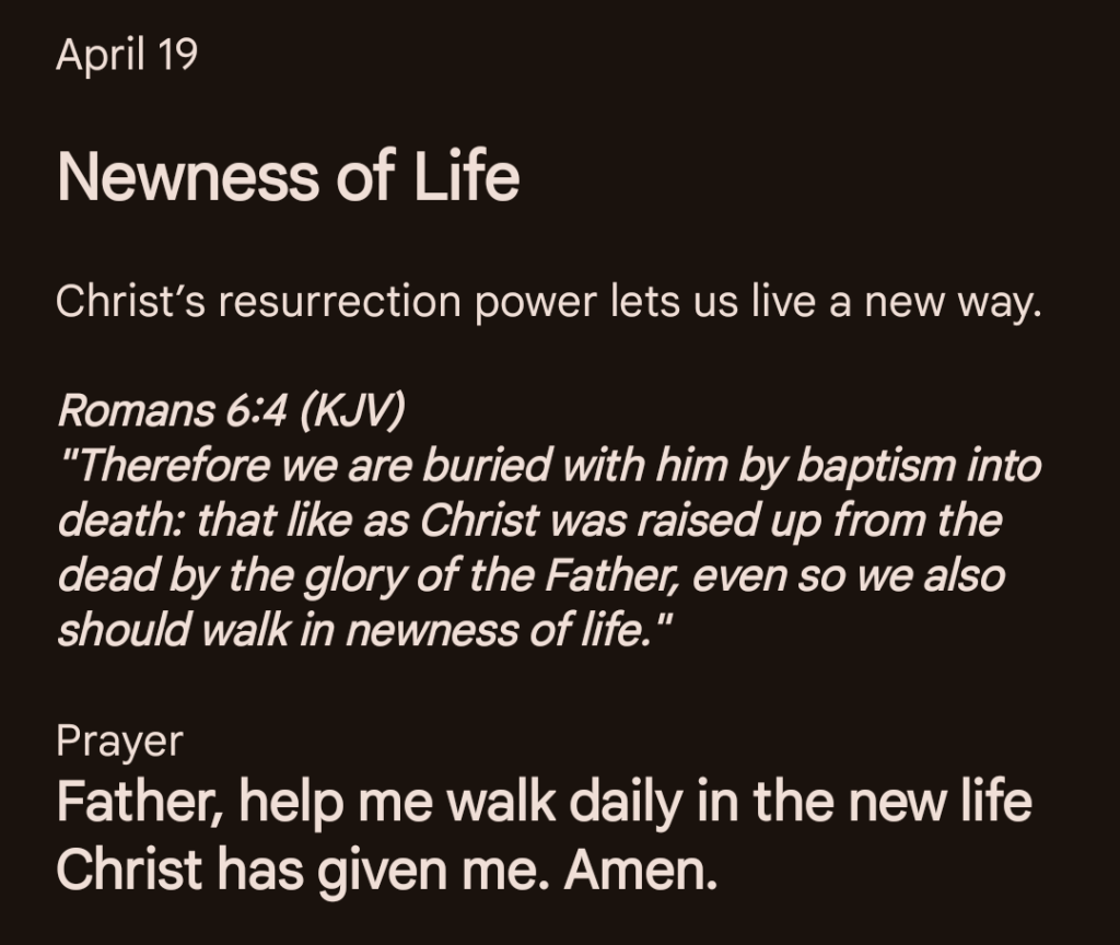 Father, help me walk daily in the new life Christ has given me. Amen.