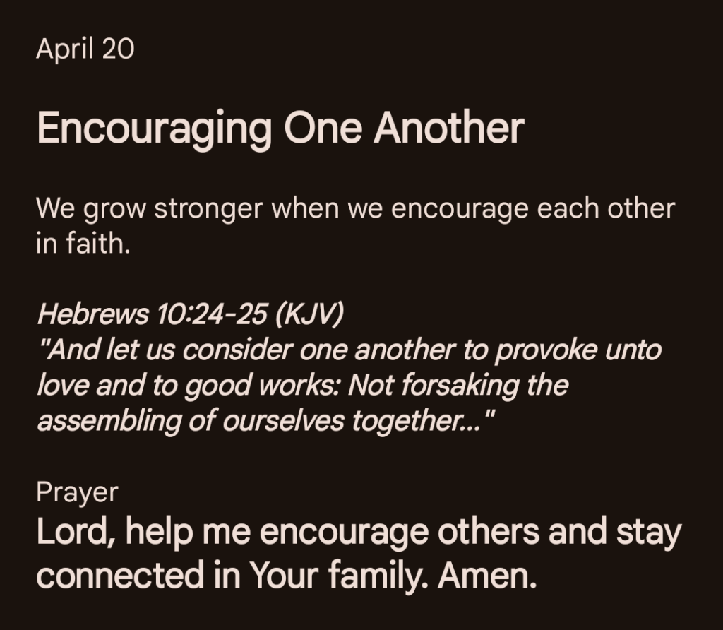 Lord, help me encourage others and stay connected in Your family. Amen.