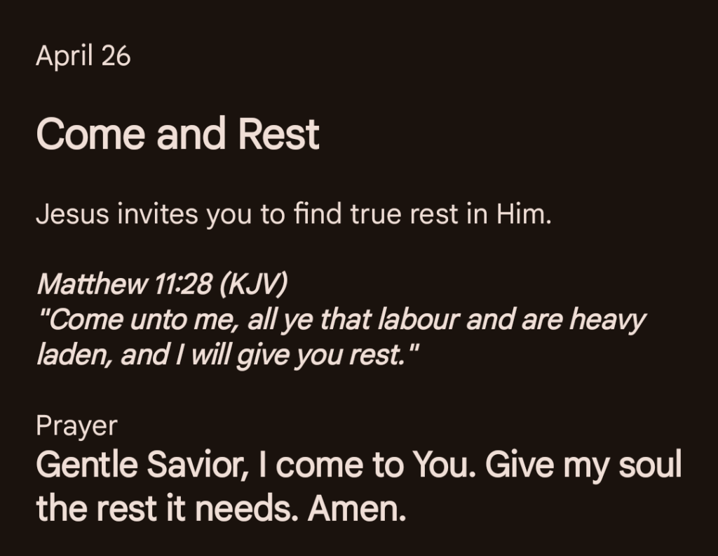 Gentle Savior, I come to You. Give my soul the rest it needs. Amen.